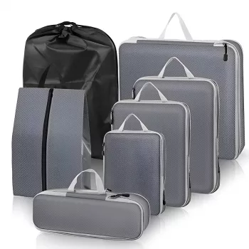 7-Piece Travel Compression Packing Cubes Set with Shoe and Laundry Bags