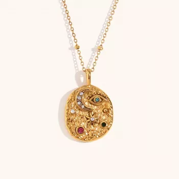 Waterproof Star & Moon Pendant Necklace with Colored Zirconia